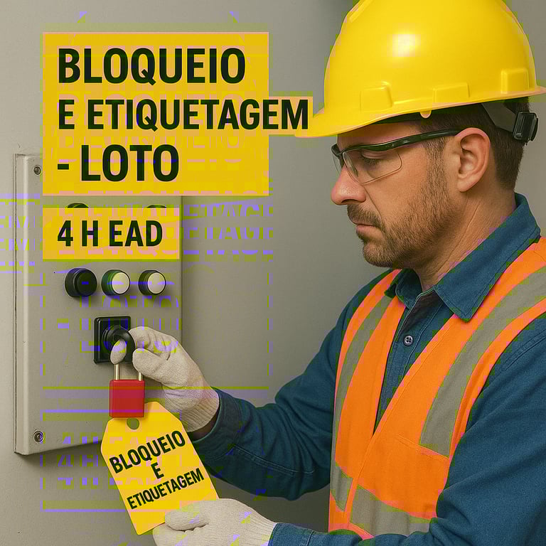 Capacitação para aplicação segura dos procedimentos de bloqueio e etiquetagem, prevenindo energização acidental durante intervenções em máquinas e instalações, conforme NR-10 e NR-12.